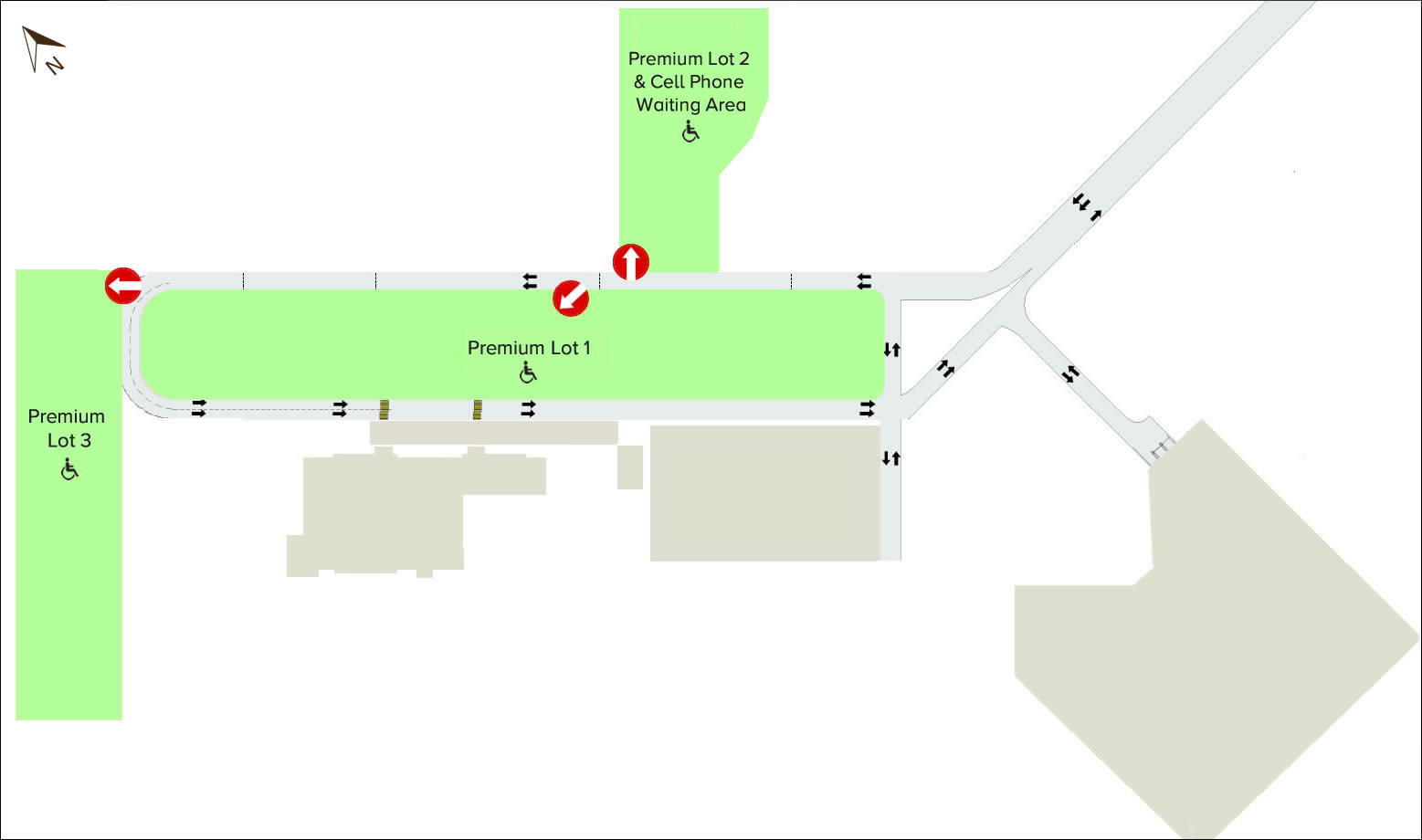 Please note, this is a dual function lot, serving as both Premium Lot 2 and a Cell Phone Waiting Area.