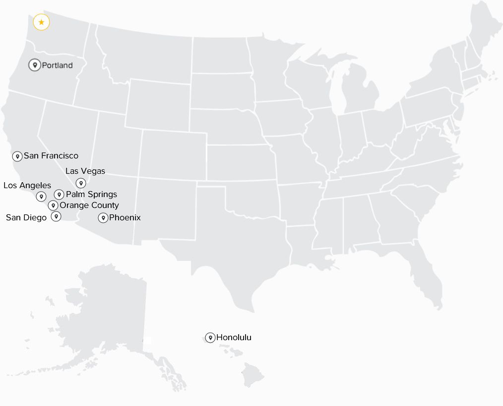 Seattle Paine Field is currently serviced by Alaska Airlines. Alaska offers direct service to the following destinations from PAE: Honolulu, Las Vegas, Los Angeles, Orange County, Palm Springs, Phoenix, Portland (coming June 2026), San Diego, and San Francisco.